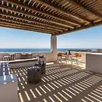 Newly Built Spectacular Sunset Villa At St. John, Mykonos Agios Ioannis Diakoftis dysponuje tarasem z widokiem na morze, 10 min jazdy od lotniska Mykonos.